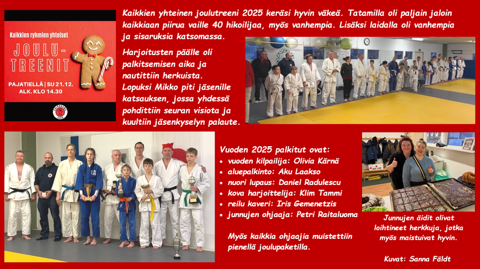 Oma dojo eli harjoitussali on osoitteessa Pajatie 5 ja siellä harjoittelee seitsemän eri ryhmää.