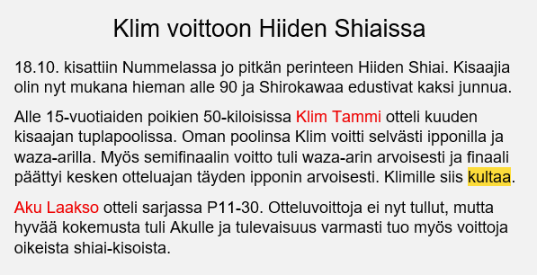 Klim otti kultaa Nummelan Hiiden Shiaissa