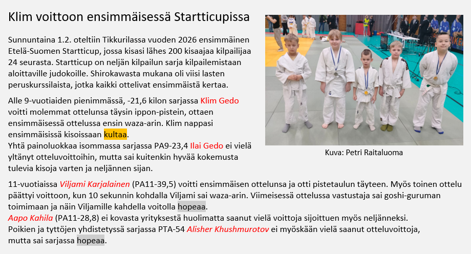 Klim Gedo otti sarjavoiton ja kultaa vuoden 2026 ensimmäisessä Startticupissa, junnujen saaliina myös kaksi hopeaa ja kaksi neljättä sijaa