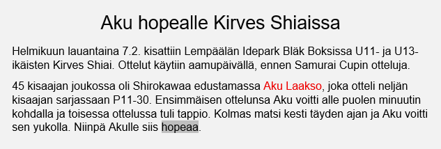 Aku otteli hopeaa Lempäälän Kirves Shiaissa