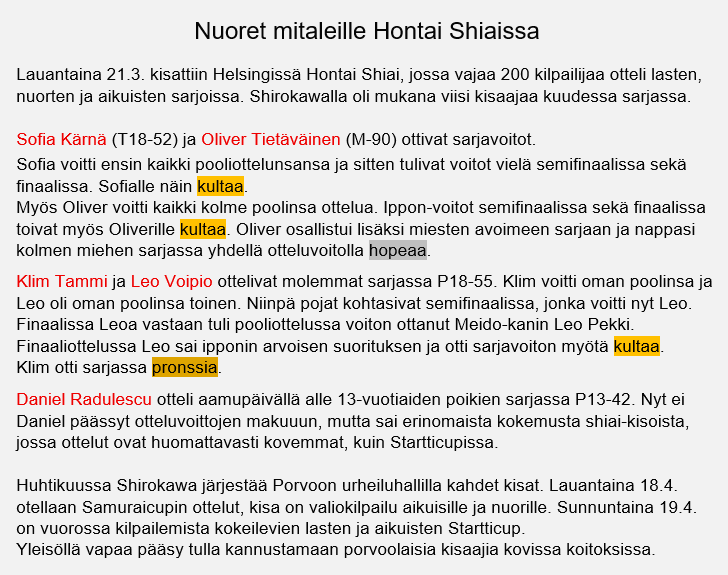 Nuoret nappasivat mitalisijoja kevään 2026 Hontai Shiaissa