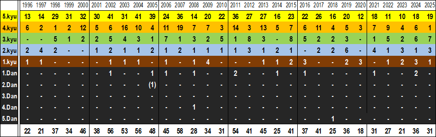 - muista, että jäsenmaksu on oltava maksettu yhtä monelta vuodelta, kuin on minimiaika vyön suorittamiseen. Suomisportin kautta myös Judoliiton lisenssi pitää olla voimassa.