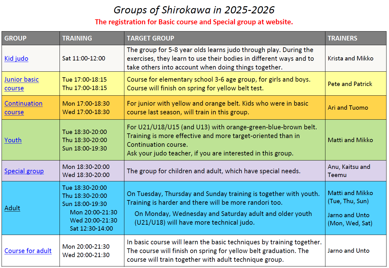 Shirokawaan liittyvät, aikaisemmin jo judoa harrastaneet.
